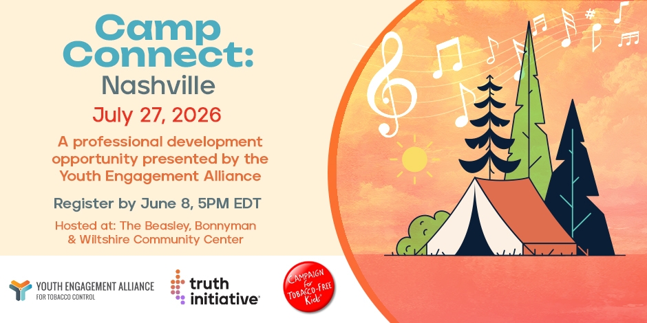 Who: Camp Connect will bring together youth engagement professionals, public health advocates working with young people, and other adult professionals working with youth on tobacco control issues across the Mid-Atlantic and Southeast region.